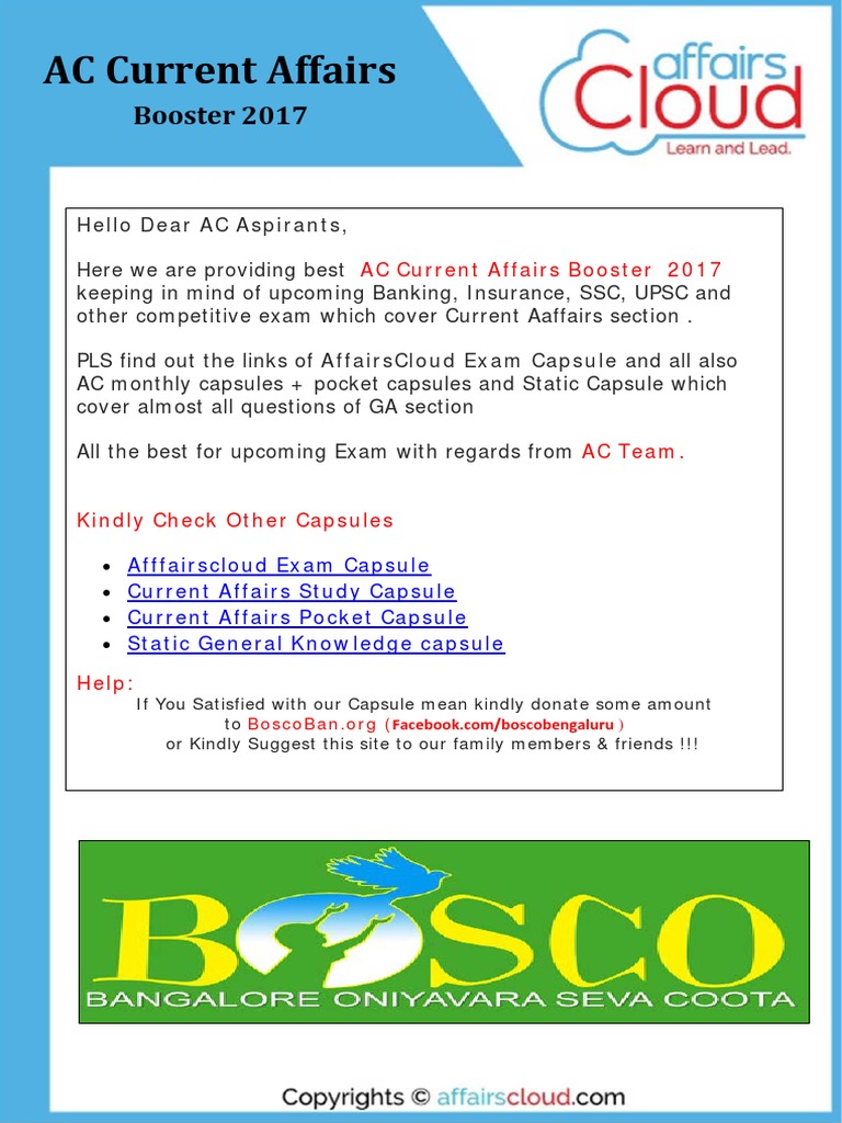 Current Affairs 2017 Pdf Capsule By Affairscloud Government